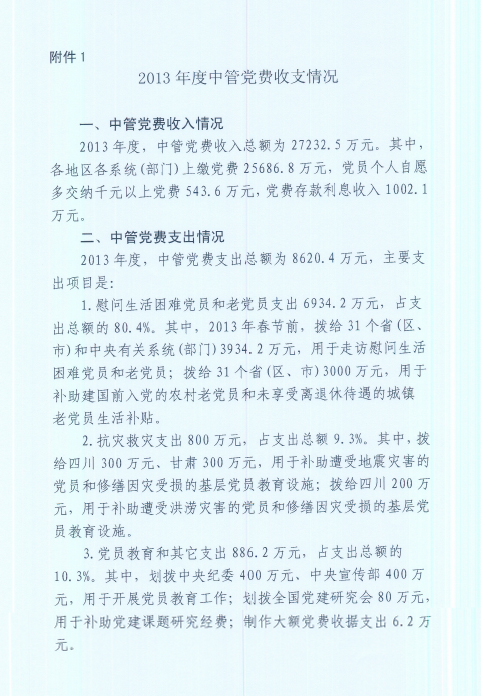 根據(jù)中組織部、國資委黨建局的指示要求,現(xiàn)將《2013年度中管黨費收支情況》和《2013年度國資委黨委黨費收支情況》